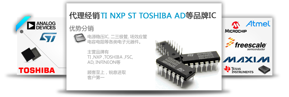 代理經銷的品牌有:TI,ON,NXP,ST,MAX,MOLEX,Rockchip,VISHAY,DIODES,CJ等。我們服務的客戶領域包括軍工廠,通信設備遠程監控設備廠商,工業自動控制,計算機,和汽車電子,光電子,POS機,鋰電池,儀器儀表等行業廠商。我們擁有全球存取貨物的能力。